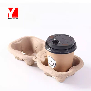 Bốn Cốc dùng một lần phân hủy bột giấy khay nước giải khát thân thiện với môi cốc giấy cho trà sữa cà phê mang đi bao bì cửa hàng cà phê